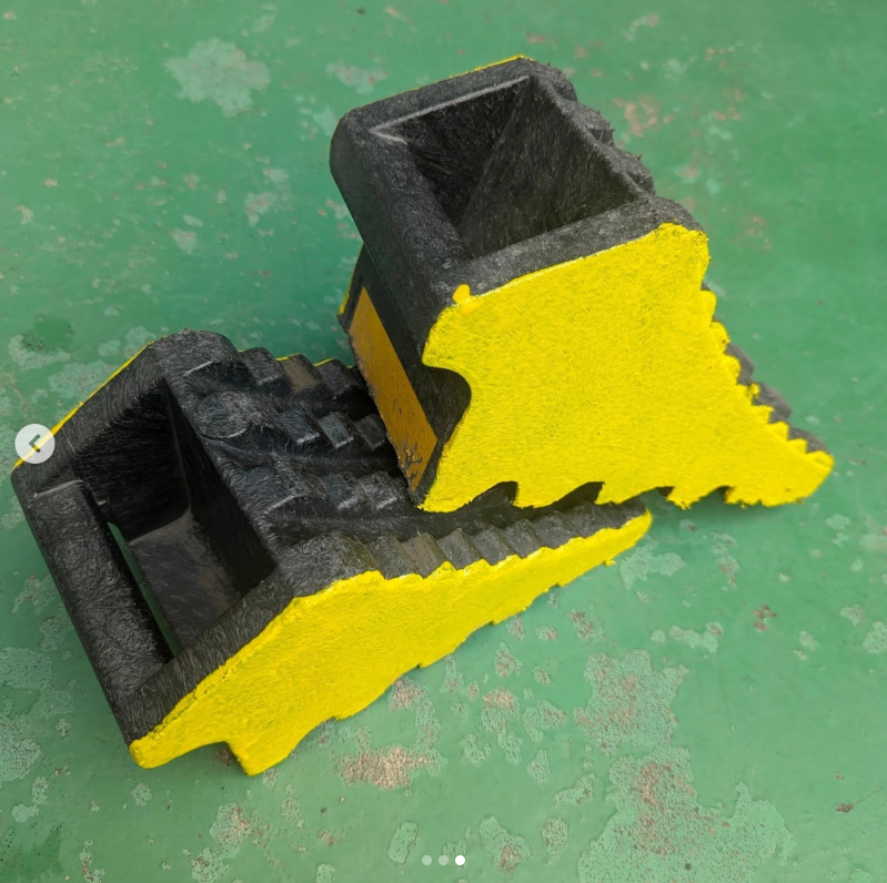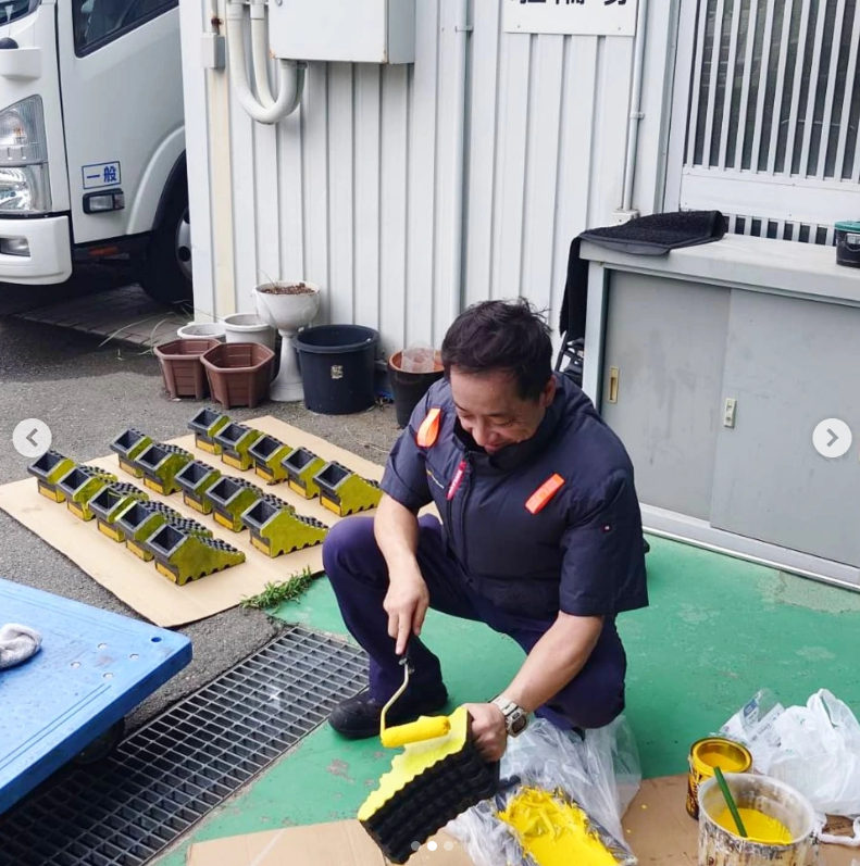 古家所長が輪留めのサイドを黄色にペイントしてくれました