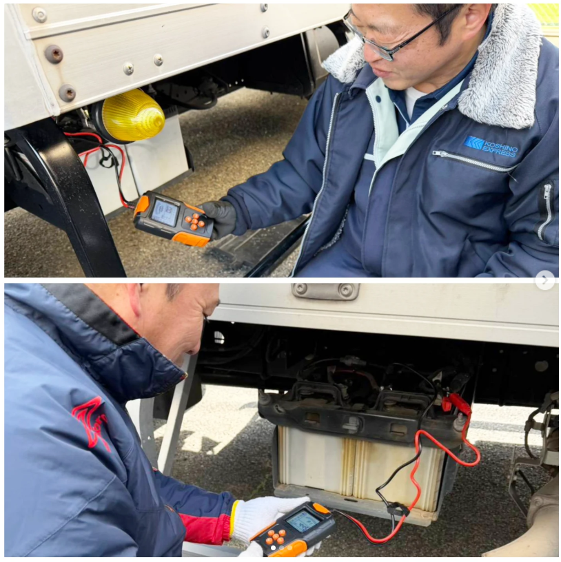 予備車も含め、全車バッテリーの電圧チェック⚡