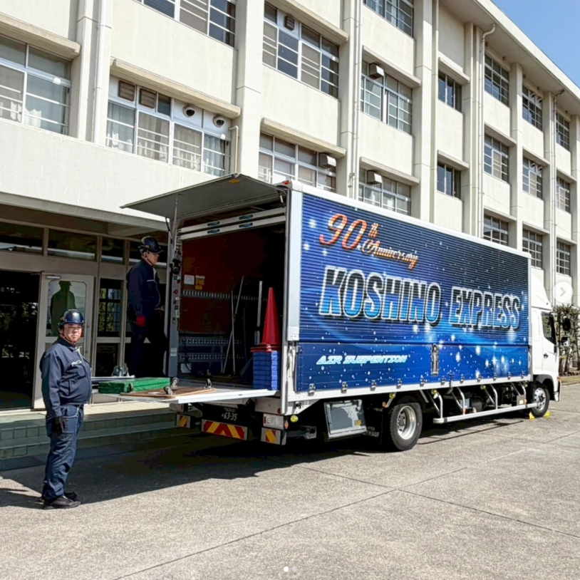 廃校が決まった高校から新たな高校への譲渡品輸送へ。 譲渡品には、家具から超音波洗浄機と積荷の種類はさまざまです。 今まで学校で大切に使われていた物を、新たな学校のもとで大切に使ってもらえるように、越野運送がお手伝いします!